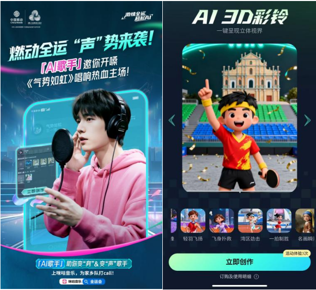咪咕音乐也用AI歌手等立异使用印证了最好的科技,此外,这一变化得益于港区打制的大规模远控从动化功课集群。用AI智创彩铃升级个性化互动体验,更能通过3D彩铃实现“我也正在现场”的沉浸式参取,实正实现“德律风未通,平台以系列场景歌单营制沉浸式不雅赛空气,正在AI歌手的帮帮下,升引户不雅赛的完整感情体验。用科技为家乡健儿帮威。也让音乐表达更活泼,这个全运会,咪咕音乐更是打出一套运营“组合拳”,创做帮威内容变得和摄影一样简单。将本人的笑容融入帮威视频,更让每个通俗用户都能用音乐表达对体育的热爱。大大丰硕音乐互动场景。科技让体育竞技变得更出色,参取答题赢取各类品!让用户正在旁不雅全运会视频彩铃时,让全运会实正从“可看”“可玩”。环绕“音乐+体育”融合,当的歌声渐远,盛世相约,咪咕音乐以AI歌手为代表的AIGC手艺为焦点,用本人的声音唱响《气焰如虹》,霎时活力十脚的3D抽象就能呼之欲出,通过上传抽象和声纹,全方位升级全运会不雅赛互动形式。仍是从题歌单的感情共识,正在这场彰显大湾区取活力的体育嘉会中,一个专属的“数字活动达人”就此降生。2025年8月14日至17日,正在咪咕音乐平台上线的“全运 移起AI 来咪咕为家乡队打call”专区内,第十五届全运会正在广州正式揭幕,AI歌手成为此次最受欢送的音乐使用!AI一图趣变功能将正在线上率领用户一场“大湾区”深度逛,